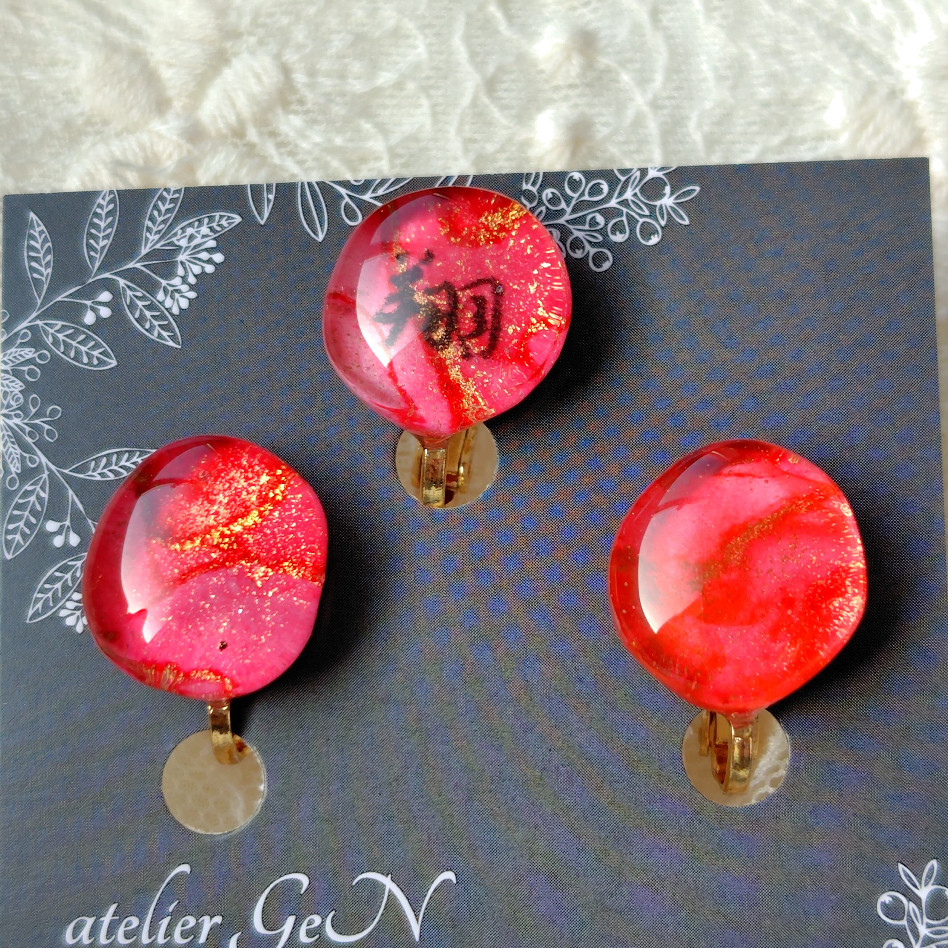 ピアス/イヤリングに関しましては、普段遣いもしていただきたいので、文字の入っていないものも2つお付けしています。
