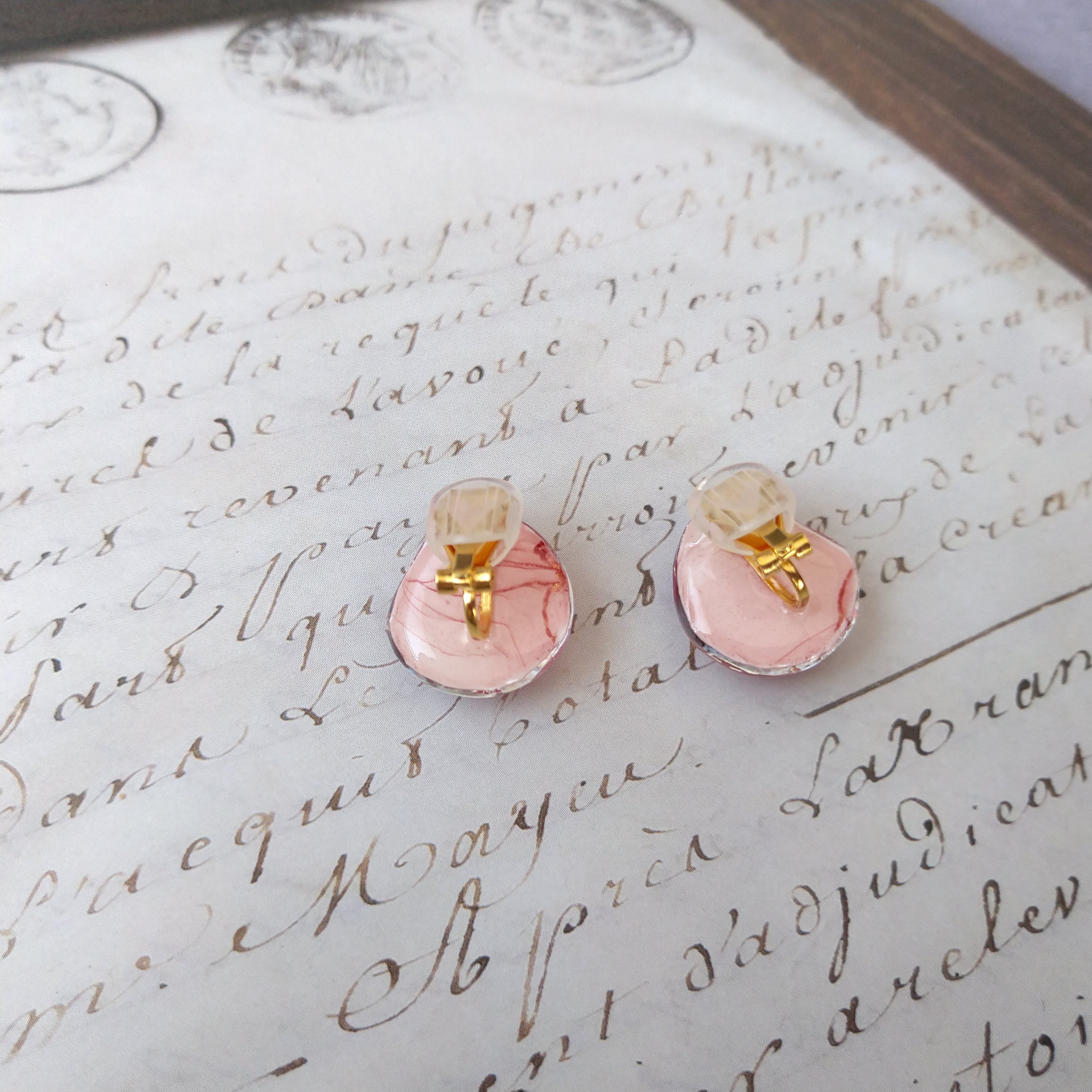 ピンクのアルコールインクアートを、レジンに封入しました。