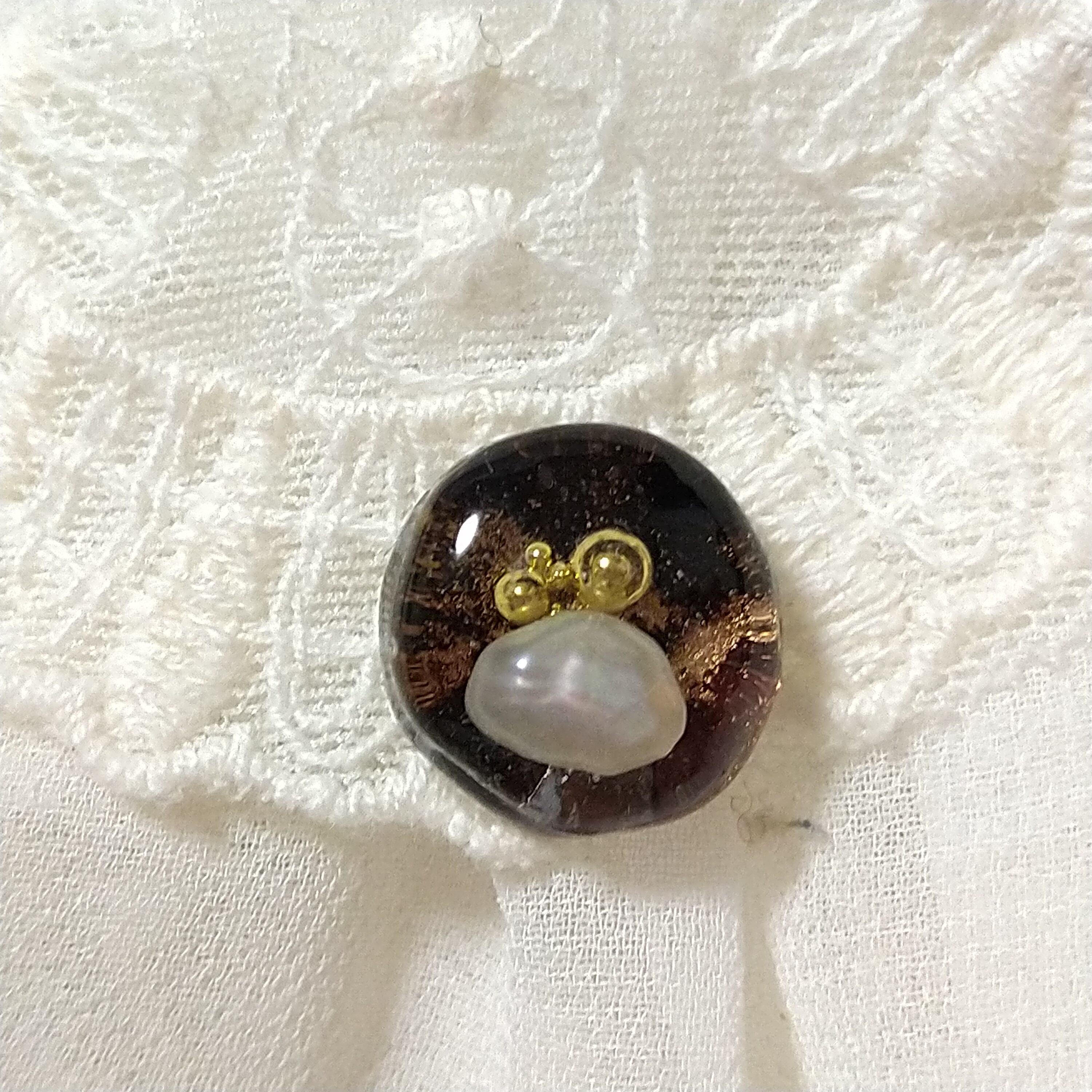 ゴールドたっぷりのブラウン系のアルコールインクアートを、レジンに封入しました。